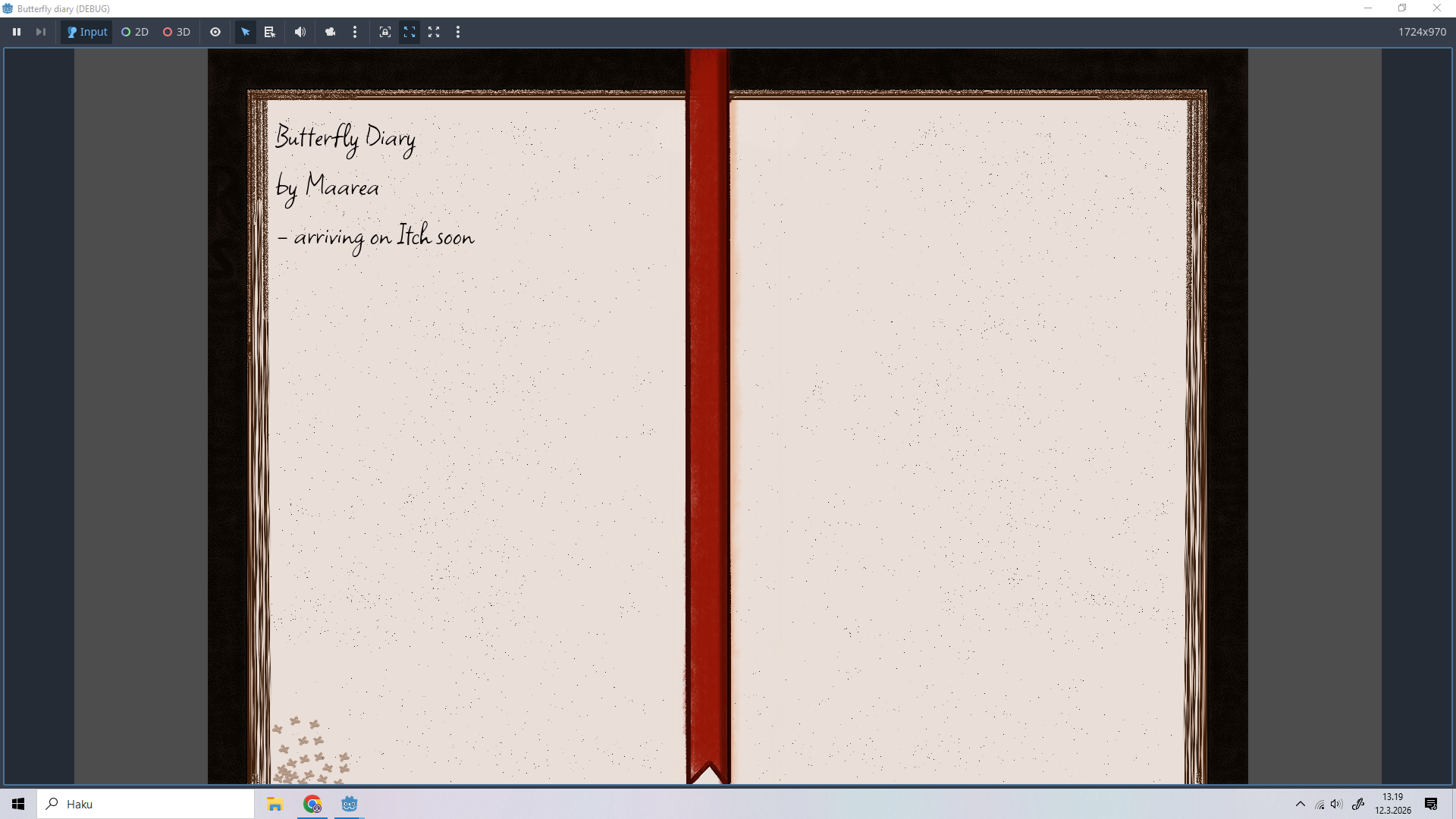 The Butterfly Diary is a text based game, where you discover and build the story with your choices. In the current state, the game development is still at the starting line, though on its way, and the plan is to deliver a demo in two months or so. But in a way that's what devlogs are for: to let you know how the game production is going, so naturally I'll be letting you all know, when I'll be needing people to test the game and when I'm wiser about releasing a demo.